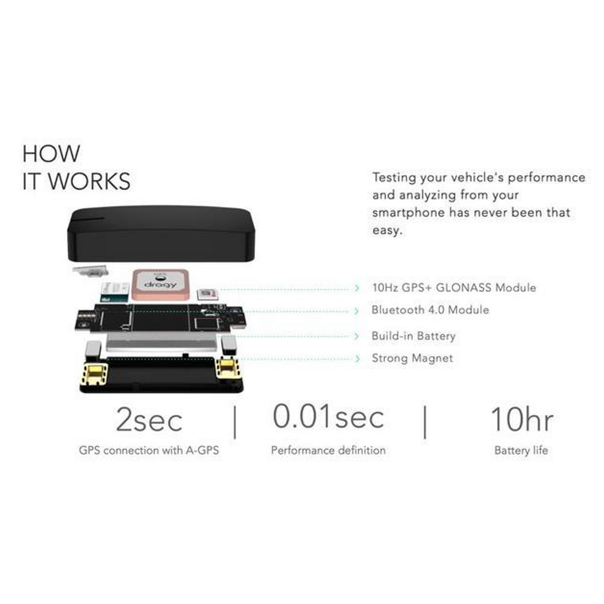 The Dragy Pro is accurate to within 0.03 seconds of professional timing systems like VBOX, at a fraction of the cost.